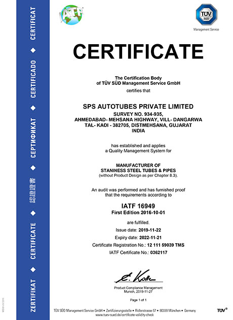 TUV - IATF 16949 certificate